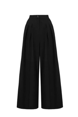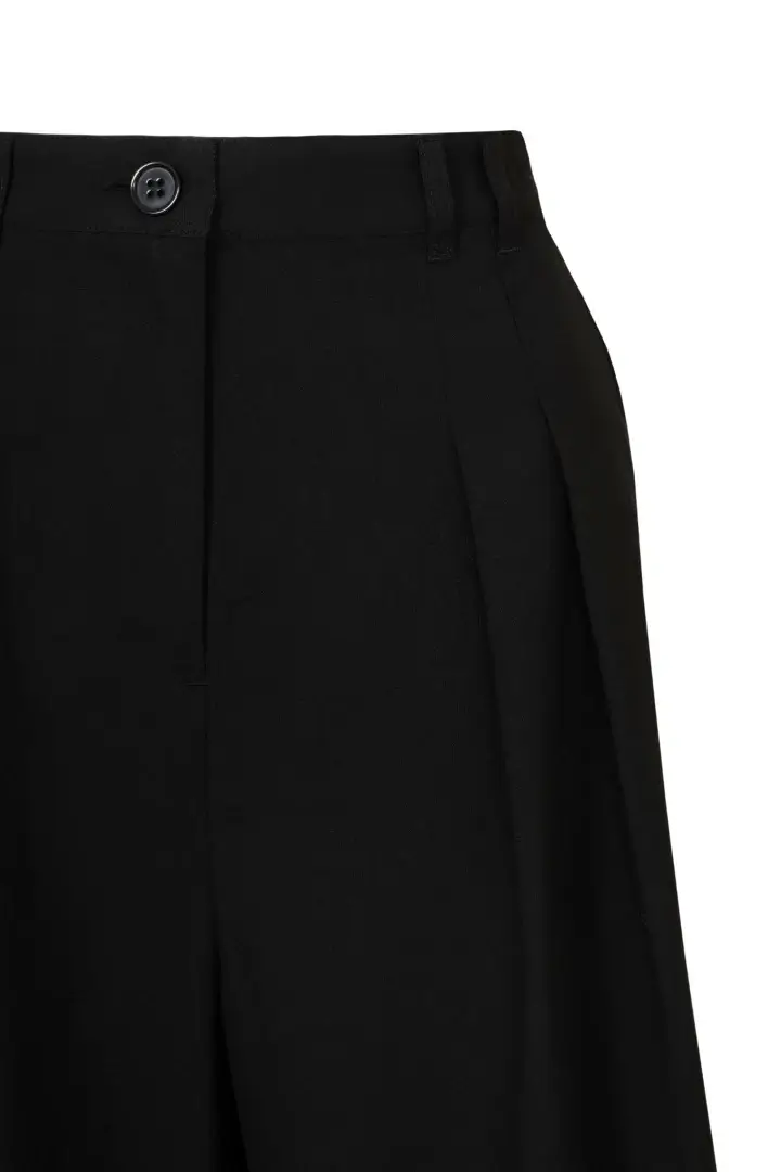 Stylish high-waisted trousers with wide legs and front pleats. Classic style in comfortable, slightly stretchy fabric.