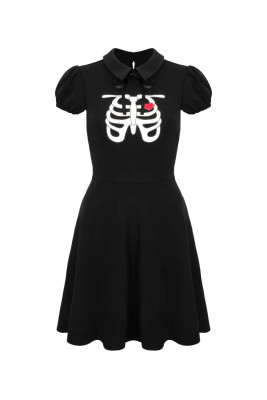 Hell Bunny Skeleton - short-sleeved, black jersey dress with a striking ribbed print and heart applique on the chest. Convenient pockets in the side seams.