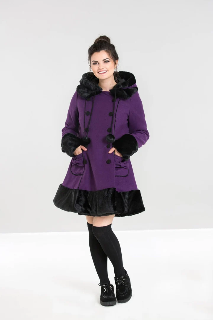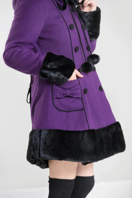 The purple Sarah Jane jacket combines Lolita style and warmth: faux fur trim, corset embellishment and romantic details.
