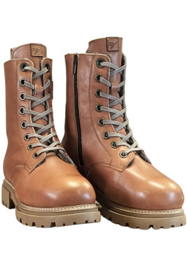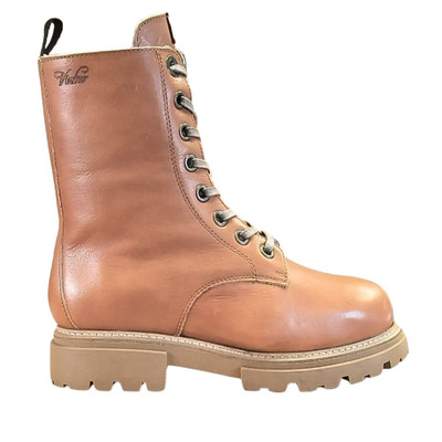 Brown leather ankle boot with a warm fur lining and a wide last. Lace-up and side zipper make it easy to put on - a true winter boot.