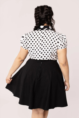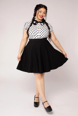 The Hell Bunny Gabby Swing Skirt is a timeless classic that combines vintage style with a modern fit. This knee-length, A-line skirt is made from a stretchy Bengaline fabric that drapes beautifully and ensures comfort.