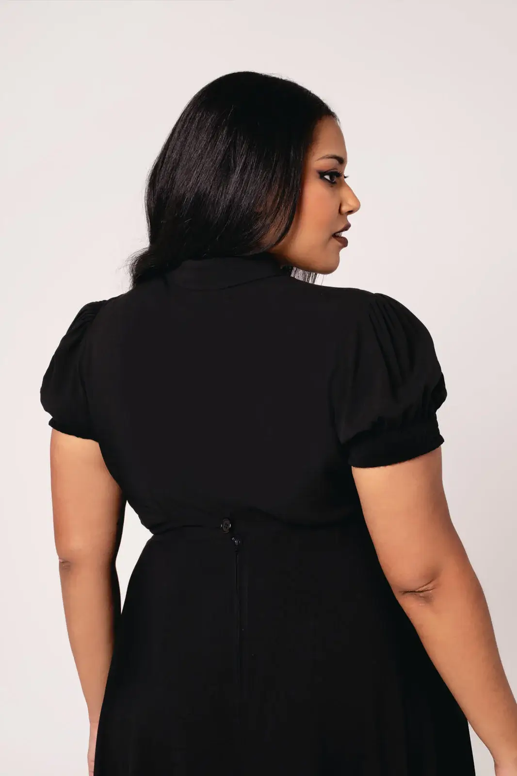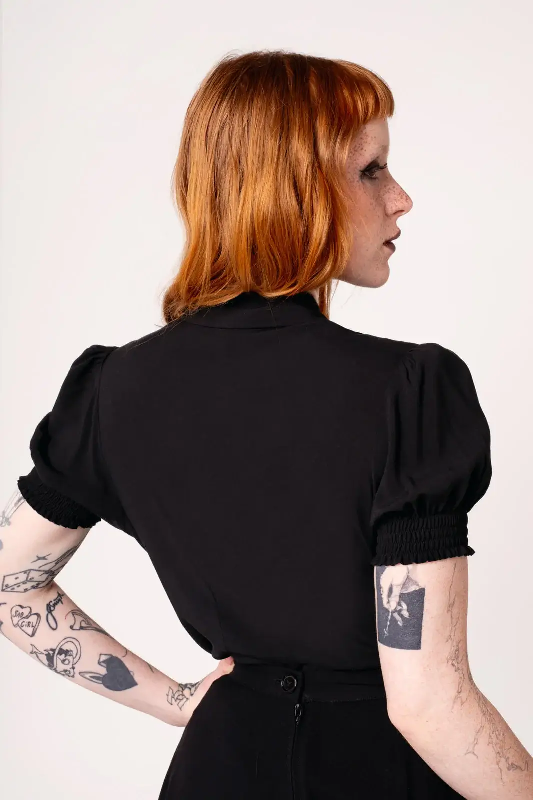 The lightweight viscose drapes beautifully and feels comfortable on the body. The Elyse blouse is an easy choice when you want to combine a dark aesthetic with a refined silhouette.