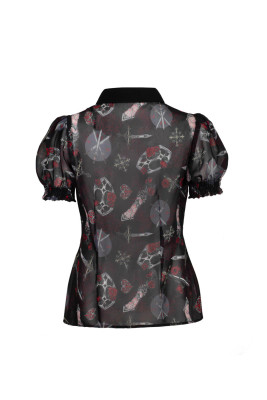 Black chiffon blouse with armor and sword print