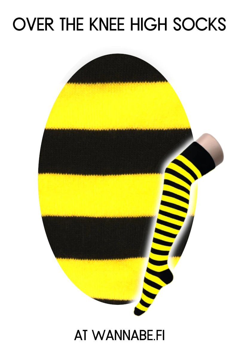 1002 Ylipolvensukat, keltainen/musta raita