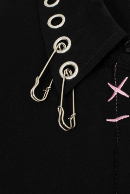 Mustassa Dylan-paidassa on rengasniittejä, hakaneuloja ja Smiley®-kirjontaa – massasta erottuvaa kapinallista asennetta ja yksityiskohtien voimaa.