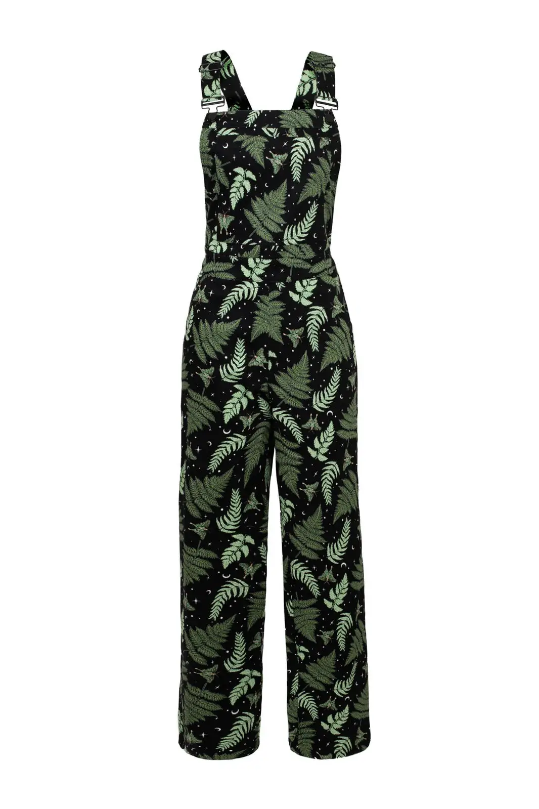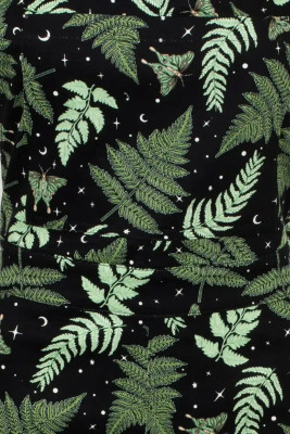 Hell Bunny Gaia -haalarit ovat täydellinen yhdistelmä arjen mukavuutta ja persoonallista tyyliä. Ikoninen Gaia-kuosi tuo mustalle pohjalle vihreitä lehtiä ja taivaallisia yksityiskohtia, jotka tekevät ilmeestä elävän mutta helposti yhdisteltävän.
