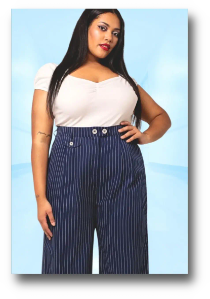 Valikoimassamme korkeavyötäröisiä, leveälahkeisia housuja. Lisäksi capreja, leggingsejä.. tarjonta vaihtelee sesongin ja kulloisenkin trendin mukaan.